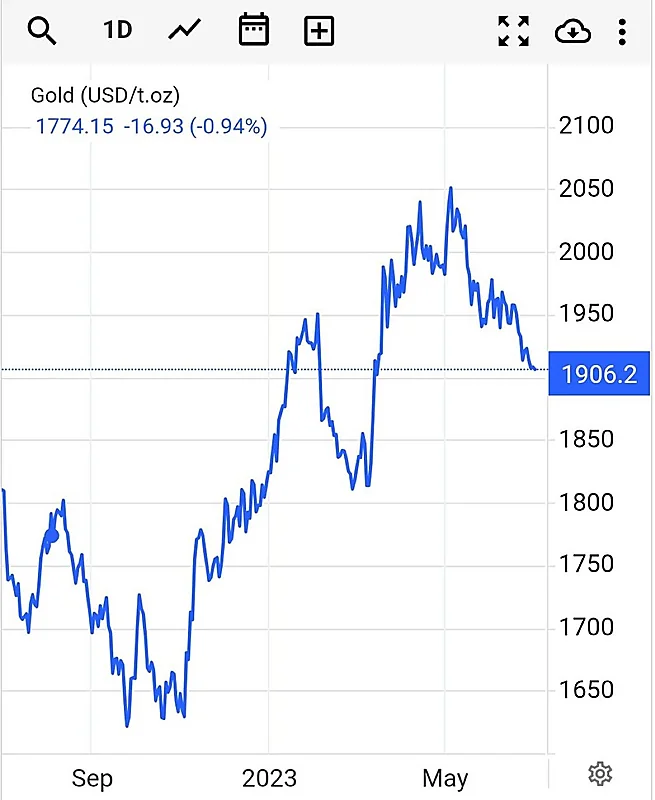 ‏تراجعت أونصة الذهب في تعاملات اليوم إلى مستويات الـ 1,902.69 دولار وهذا أدنى مستوى لها منذ مارس الماضي.