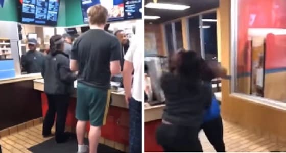 نشبت مشاجرة عنيفة بين زبونة وعاملة بإحدى فروع مطعم ماكدونالدز الشهير ، لقنت الزبونة فيها درساً قاسياً أمام الزبائن .