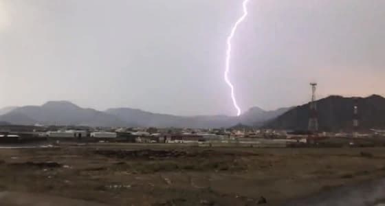 ووثق مقطع فيديو، لحظة ظهور الصواعق في سماء مكة، كاشفًا عن قوة الصواعق المتزامنة مع حالة الأمطار والسيول.
