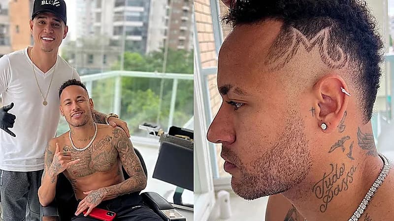 وجاء نيمار برفقة مصفف الشعر الذي قام بوضع أول حرف من مولودة الأخير الجديدة "مافي " على شعر لاعب نادي الزعيم .
